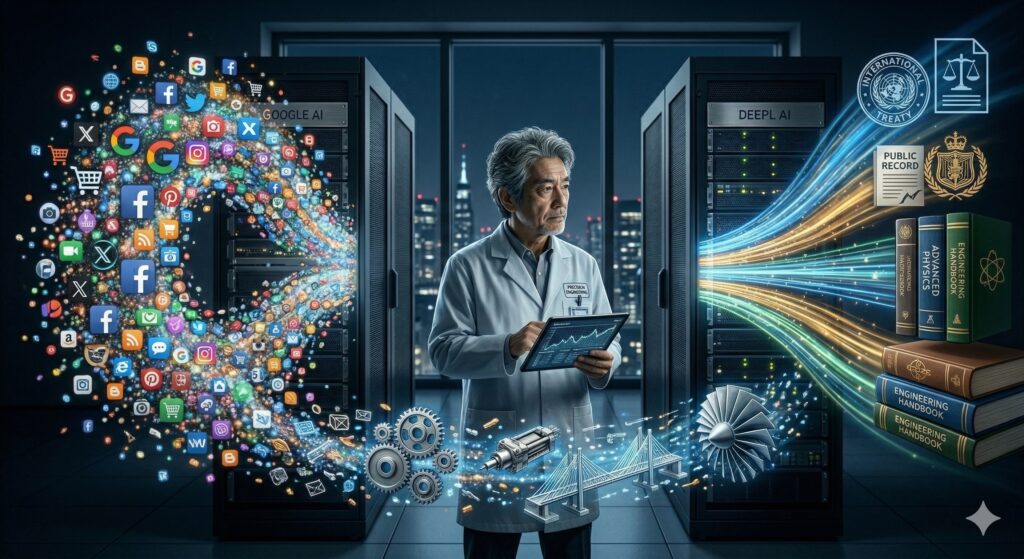 • Google翻訳: 圧倒的な「量」のデータ。ウェブ上のあらゆるテキストを学習しており、汎用性が高いのが特徴です。