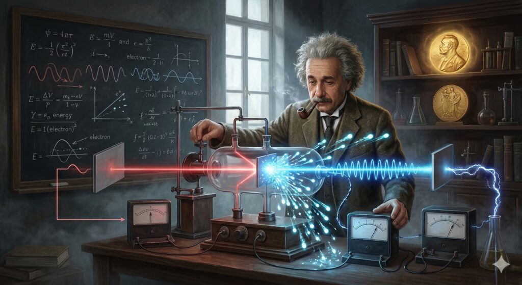 実は、この仕組みを論理的に解明したのは、あの天才物理学者アルベルト・アインシュタインです。彼は相対性理論で有名ですが、1921年にノーベル物理学賞を受賞したのは、この「光電効果」の研究によるものでした。
