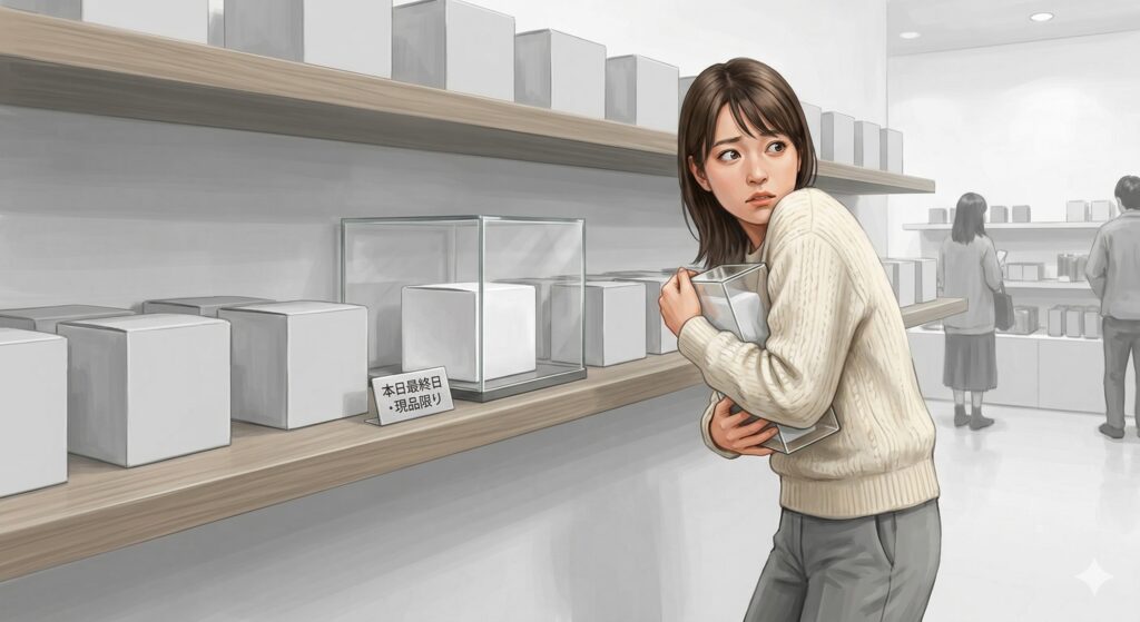 次に「限定」という赤いラベルを見たとき。その裏側で、あなたの脳が「損をしたくない!」と叫んでいる声を聞いてみてください。その声に気づけたとき、あなたはすでに罠の外に立っています。