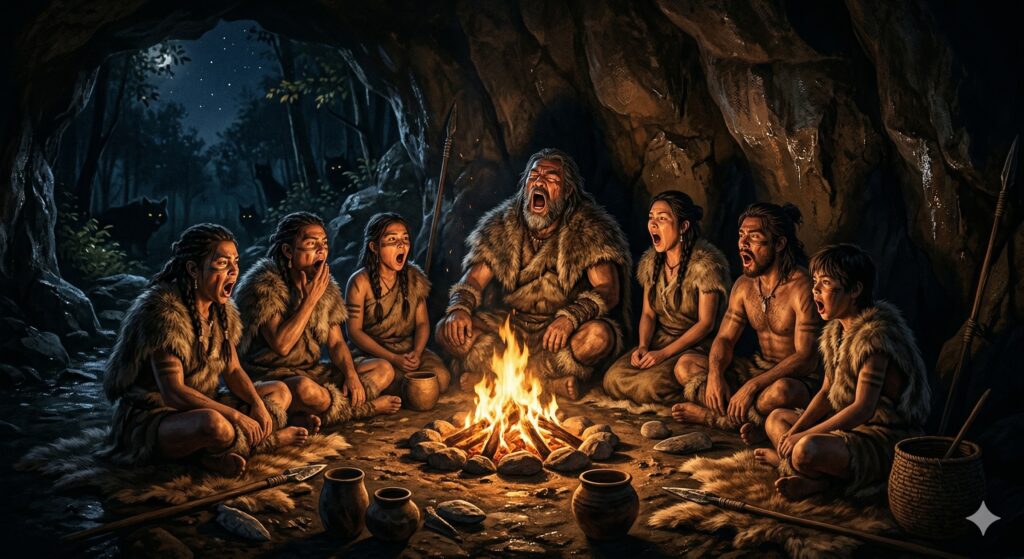 原始的なコミュニティにおいて、一人が疲れを感じてあくび(脳の冷却)を始めたとき、それは集団全体の「警戒レベルが下がっている」というサインでした。