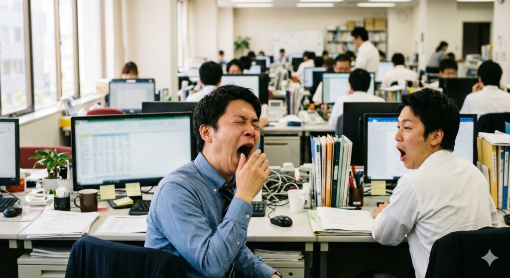 午後の会議室。重苦しい空気の中、一人の同僚が小さく「ふわぁ……」とあくびをしました。