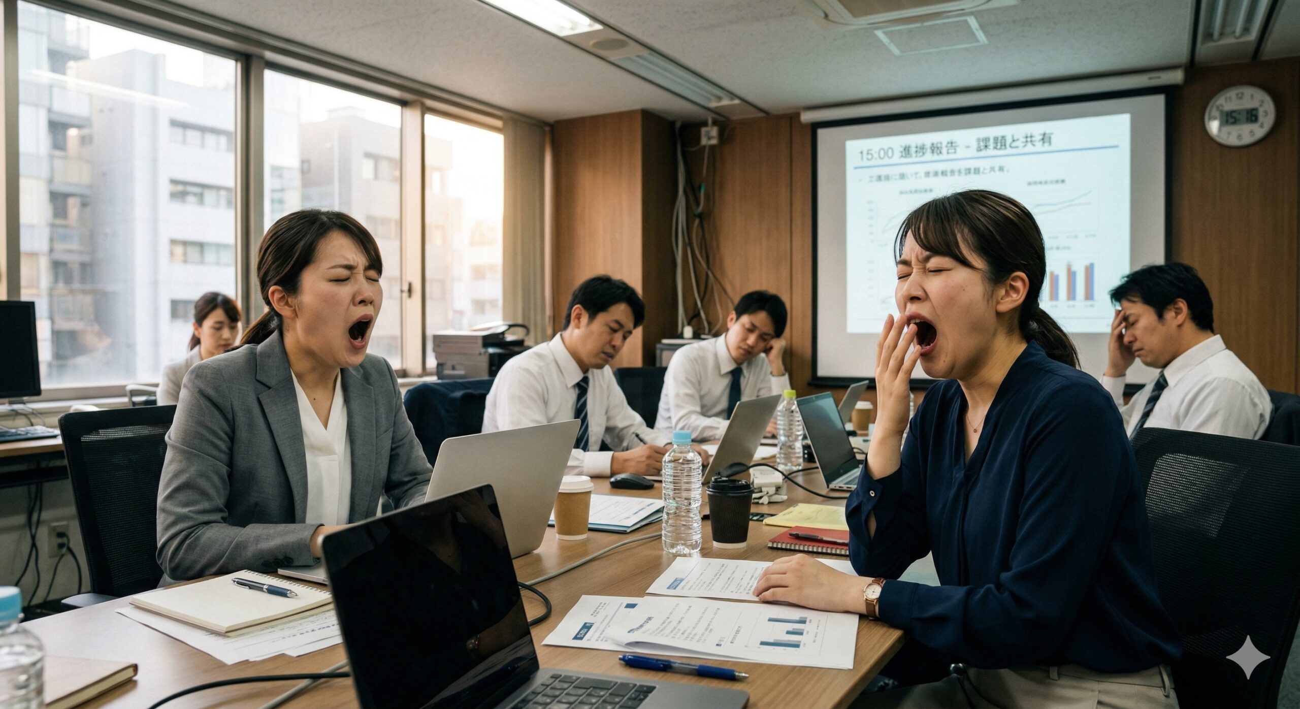 午後の会議室。重苦しい空気の中、一人の同僚が小さく「ふわぁ……」とあくびをしました。
