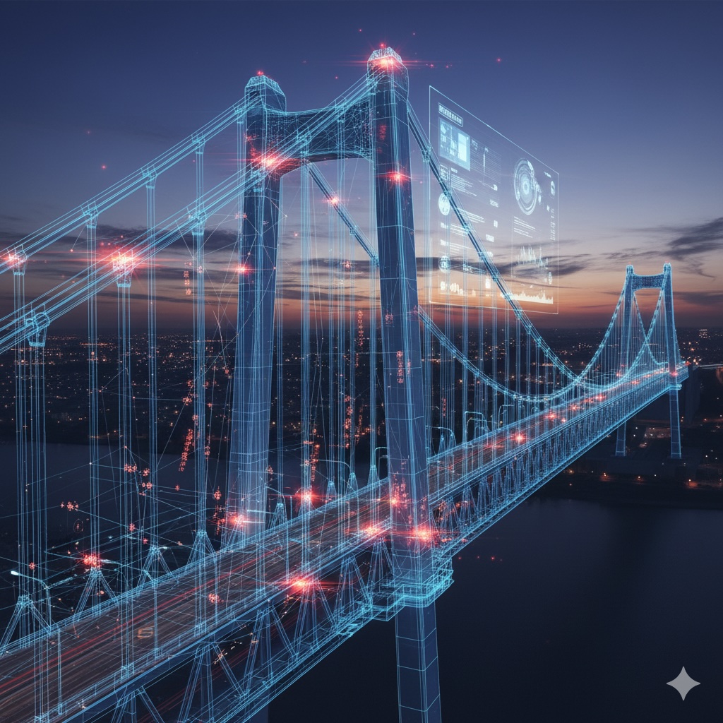 巨大な橋やビルの「デジタル上のコピー(デジタルツイン)」を作成し、AIが天候や湿度からサビの発生を数年単位で予測します。目に見える前に「里帰りの兆候」を掴み、先回りして対策するのが現代のスタンダードです。