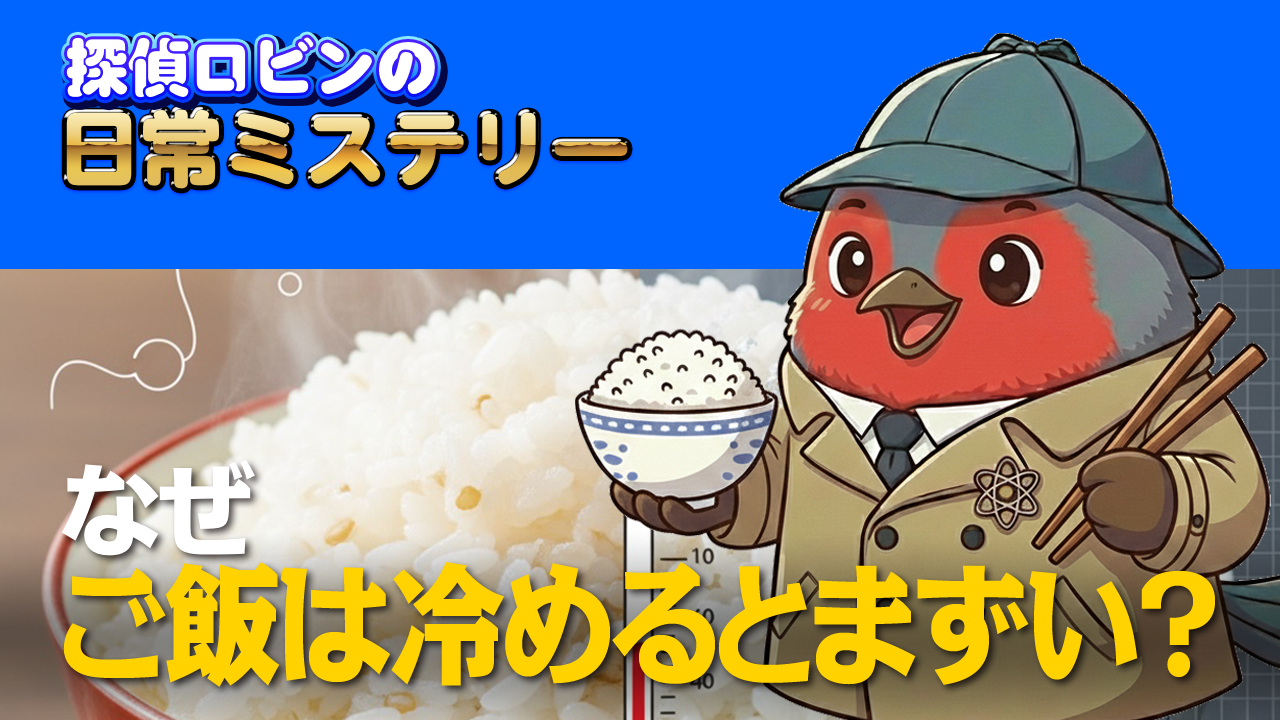 **「冷めたご飯がまずくなる謎」**を、探偵ロビンが科学で解き明かします。
