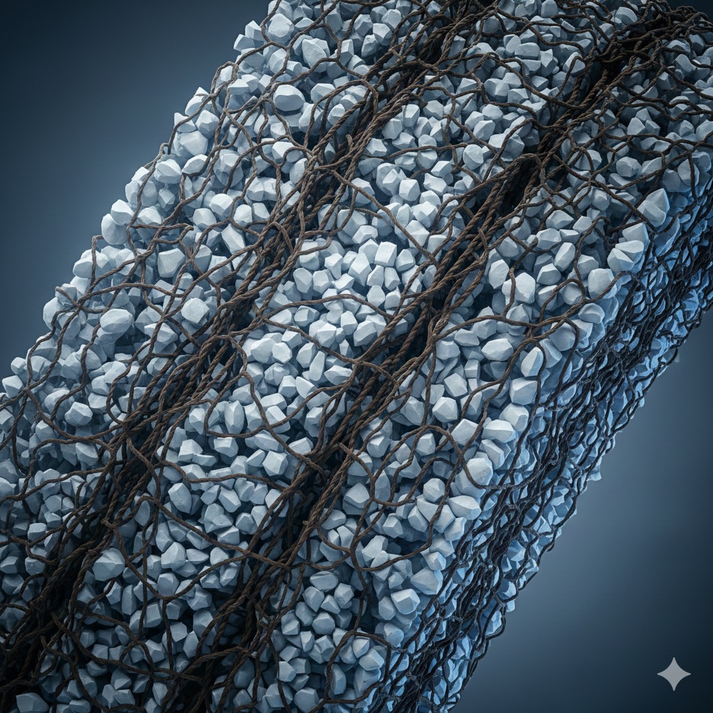 なぜパスタは、ただの「糊(のり)」のようにドロドロにならないのでしょうか? それは、強力なタンパク質「グルテン」が壁を作っているからです。