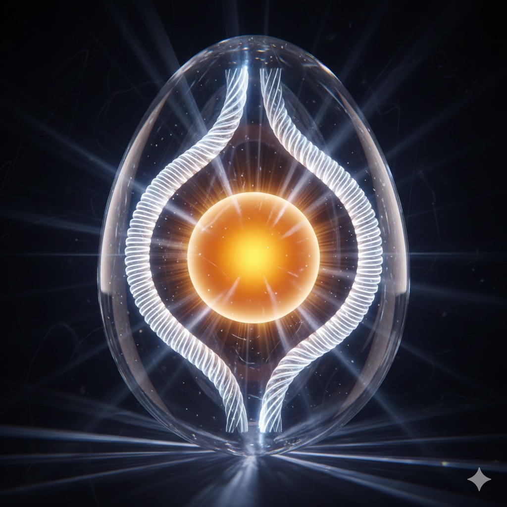 卵の黄身が真ん中にあるのは、決して偶然ではありません。それは「カラザ」という強靭なタンパク質の紐が、浮力と戦い、回転のエネルギーをバネに変え、細菌を遠ざけるために、24時間365日休まずに黄身を吊り上げ続けているからです。
