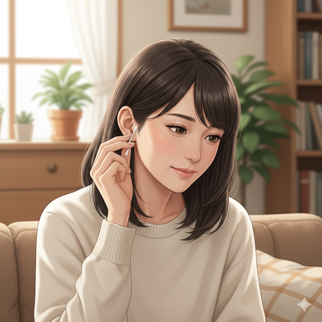- 乾性タイプ: 月に1〜2回、入り口付近を軽く綿棒でぬぐうだけで十分です。奥に押し込まないよう注意。
