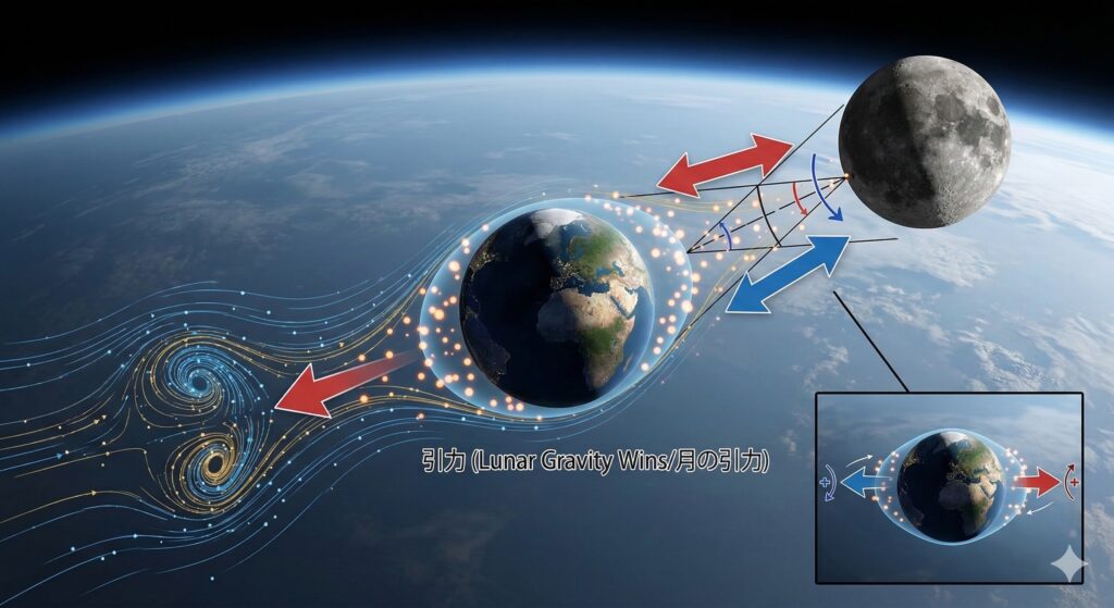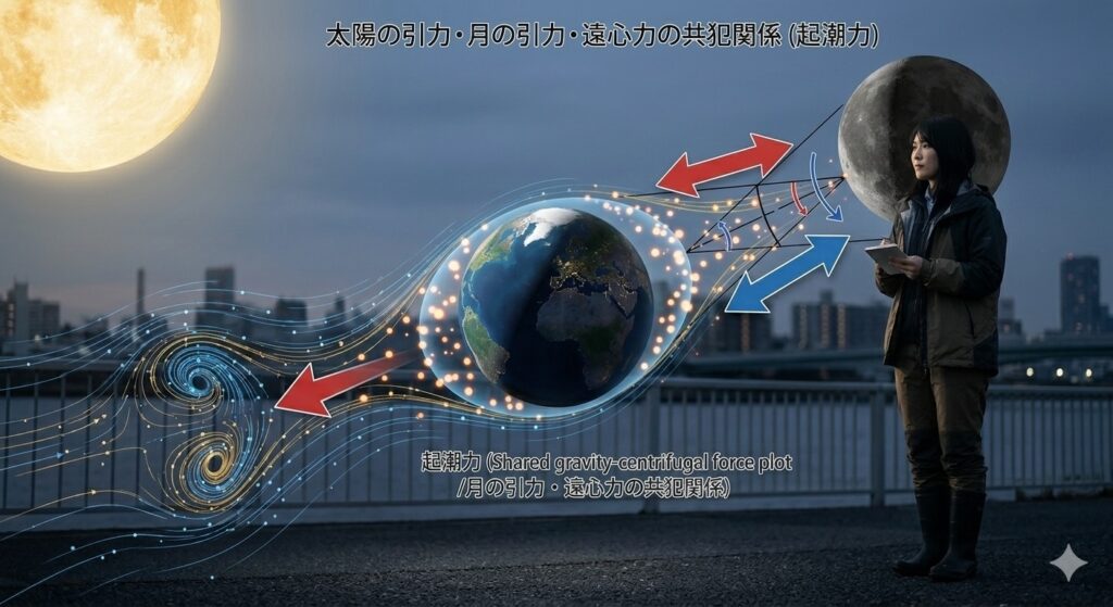 捜査の核心は、この2つの力の「差」にあります。これを「起潮力(ちょうせきりょく)」と呼びます。