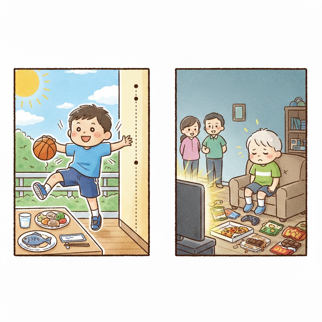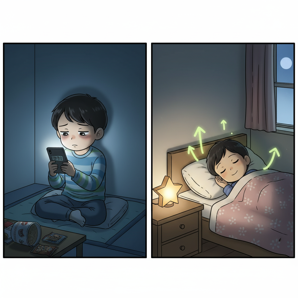 - 栄養:タンパク質、カルシウム、ビタミンDなどの摂取が成長に直結する。