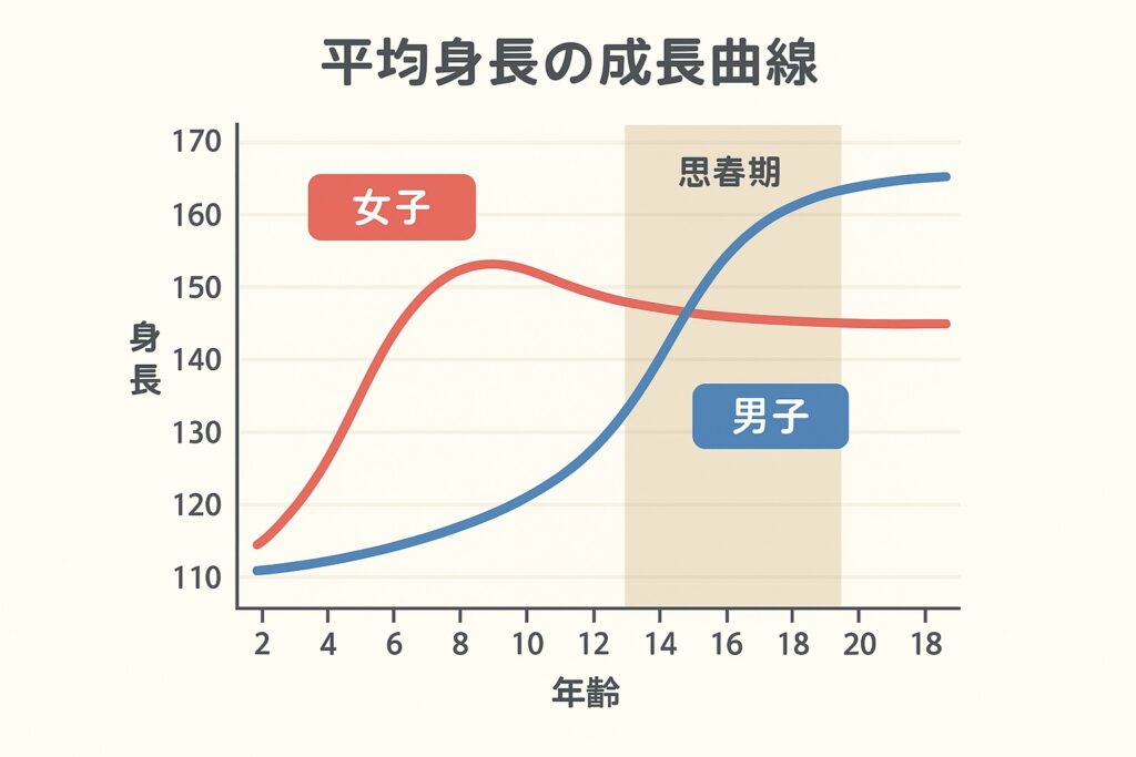 ただし、これは目安であり、実際には個人差が大きく、骨年齢(手首X線などで評価) が医学的に重要な指標となります。