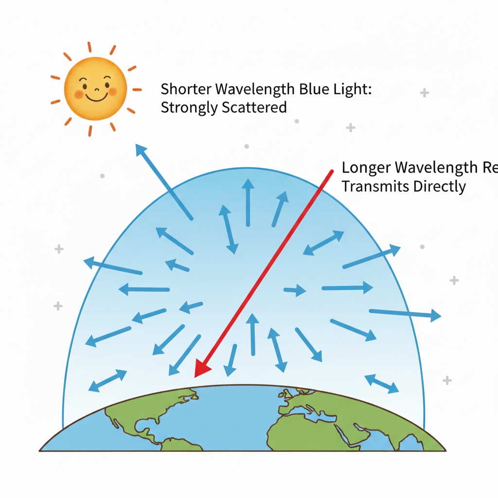 地球の大気中には酸素や窒素などの分子が存在し、太陽光が大気を通過するときに波長の短い光がより強く散乱されます。