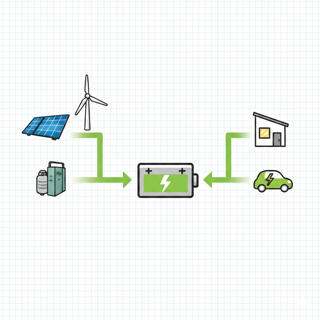 - 二次電池(充電型):化学反応が可逆で、外部から電気を逆方向に流すことで反応を戻せる(例:リチウムイオン電池、ニッケル水素電池)。2