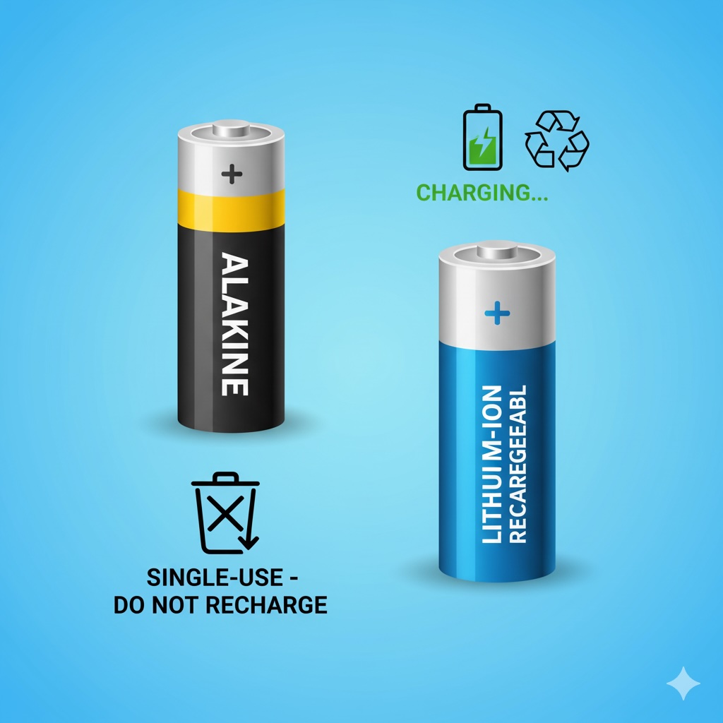 - 一次電池(使い切り型):化学反応が不可逆で、反応物が尽きると電池は使えなくなる(例:アルカリ乾電池)。