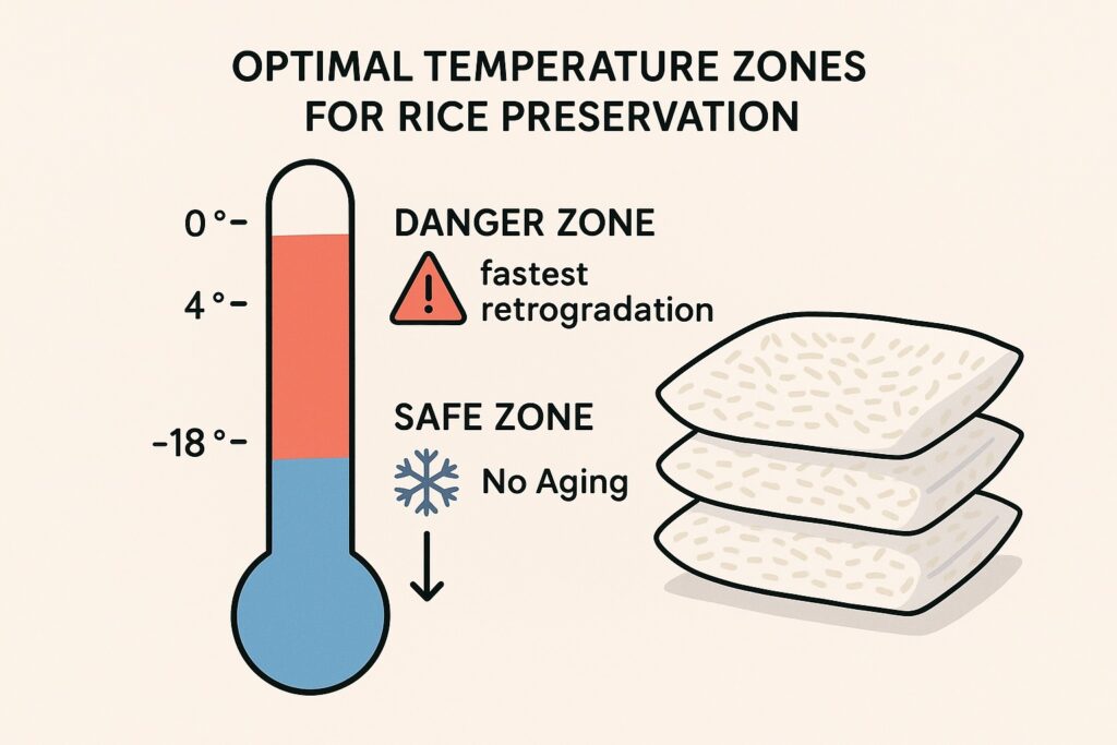 - 冷凍が最強の解決策である理由: 一方、−18℃以下(家庭用冷凍庫の温度帯)では、デンプン分子の動きが完全に停止するため、老化はほとんど進行しません。そのため、ご飯を保存する際は、この危険温度帯を避け、急速に冷凍するのが最も効果的です。