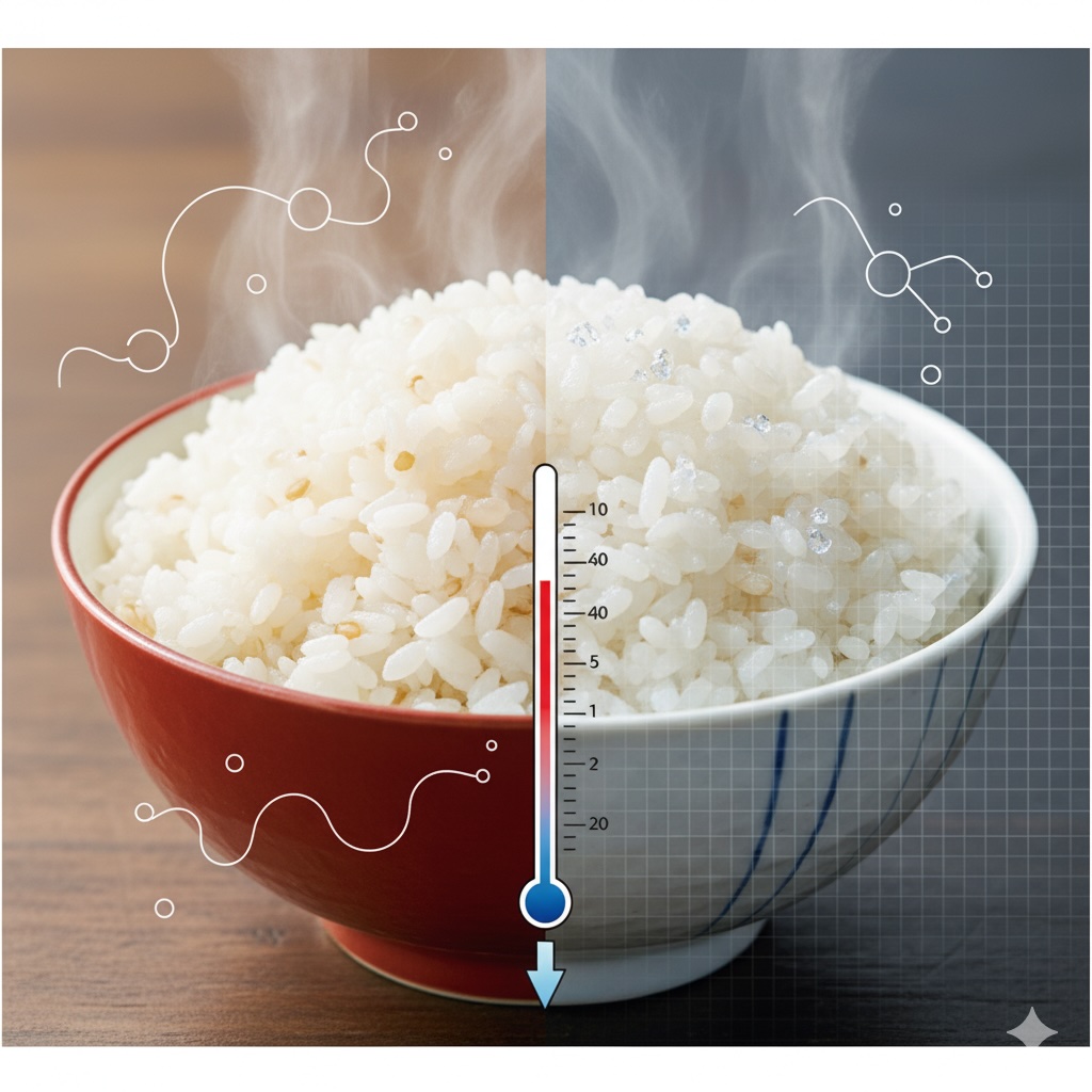 本記事では、ご飯が炊き上がった瞬間に始まるデンプンの劇的な変化を追い、冷めることでデンプン分子がどのように構造を変化させ、ご飯の食感と風味を奪っていくのかを「化学捜査」を通じて徹底的に解明します。