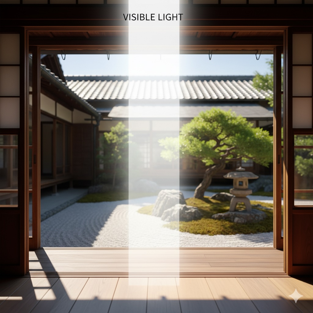 ガラスは、光を反射したり吸収したりするのではなく、まるで光のエネルギーを受け流す盾のように振る舞い、私たちに景色をそのまま届けているのです。