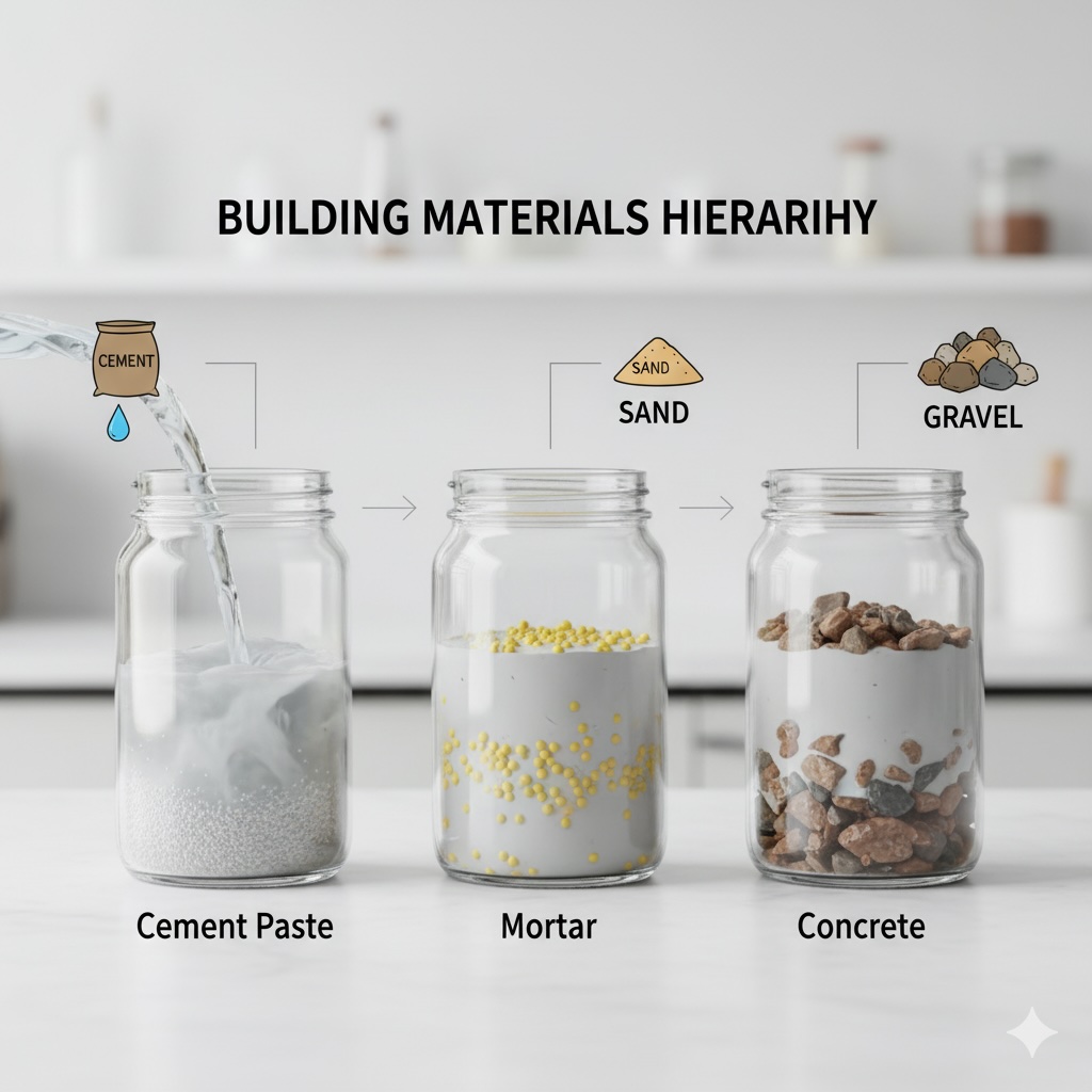 1. 事前の整理:セメント、モルタル、コンクリートの違い