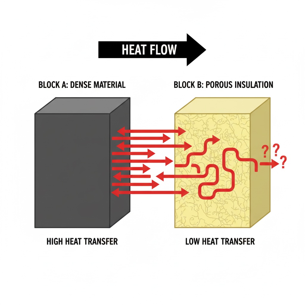 このように、断熱材は「動かない空気の層」を大量に作り出すことで、熱の伝導と対流の二つの主要な経路を封じ込めているのです。