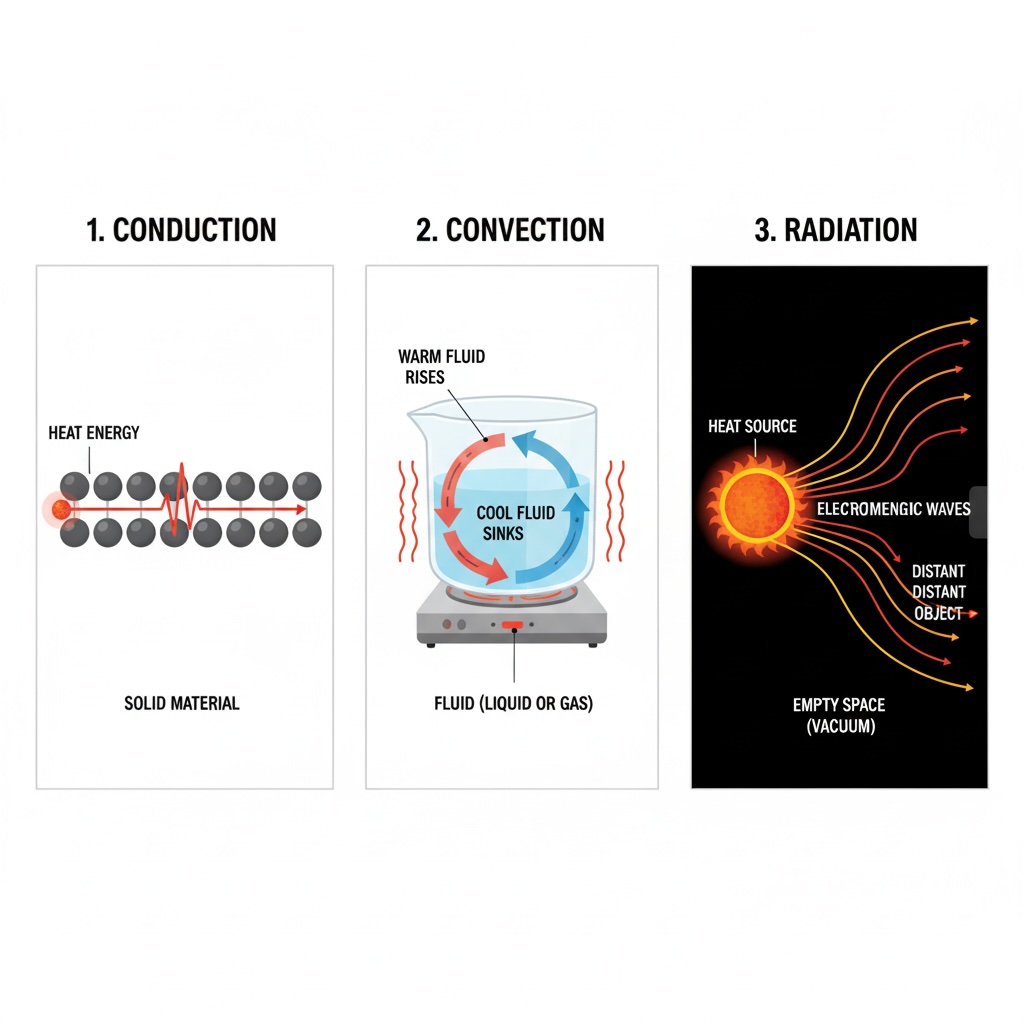 - 熱伝導、対流、放射に関する物理学の基本原理