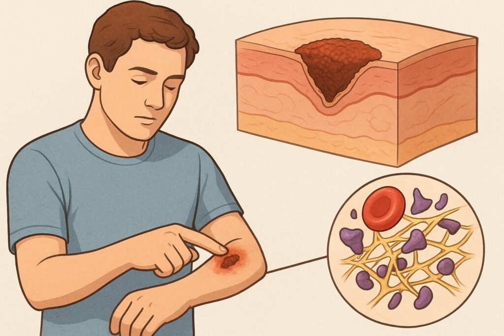 🔹 最終的な治癒:傷跡(瘢痕)を残さないために カサブタの下で皮膚が再生する際、皮膚の深い部分である真皮の組織がどのように再構築されるかによって、傷跡(瘢痕)が残るかどうかが決まります。