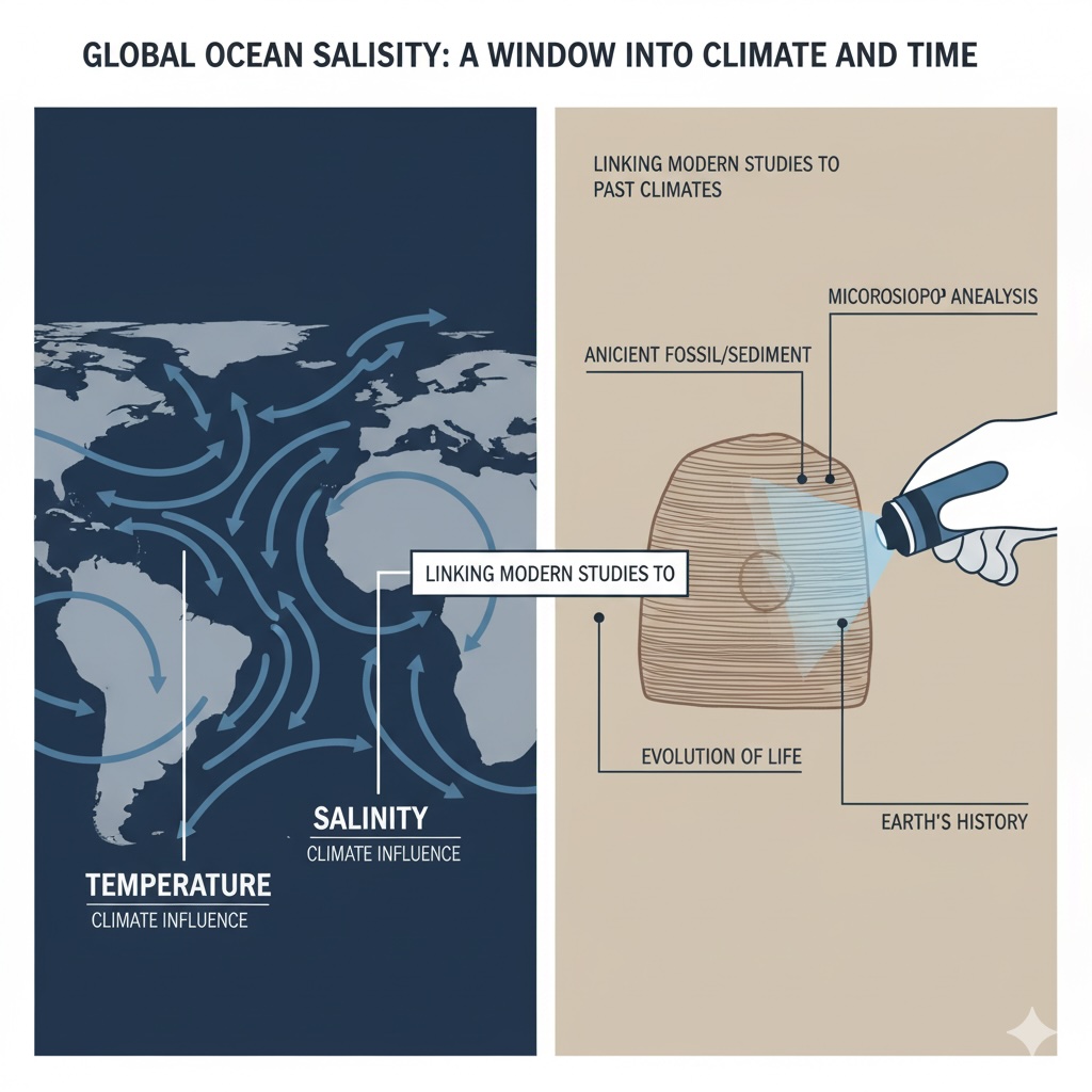 🔹 気候変動の指標 海水の塩分濃度は、地球の気候変動に密接に関わります。温暖化で氷河が融解すれば真水が流れ込み塩分濃度が低下し、海流の動きや海洋生態系に大きな影響を与えます。
