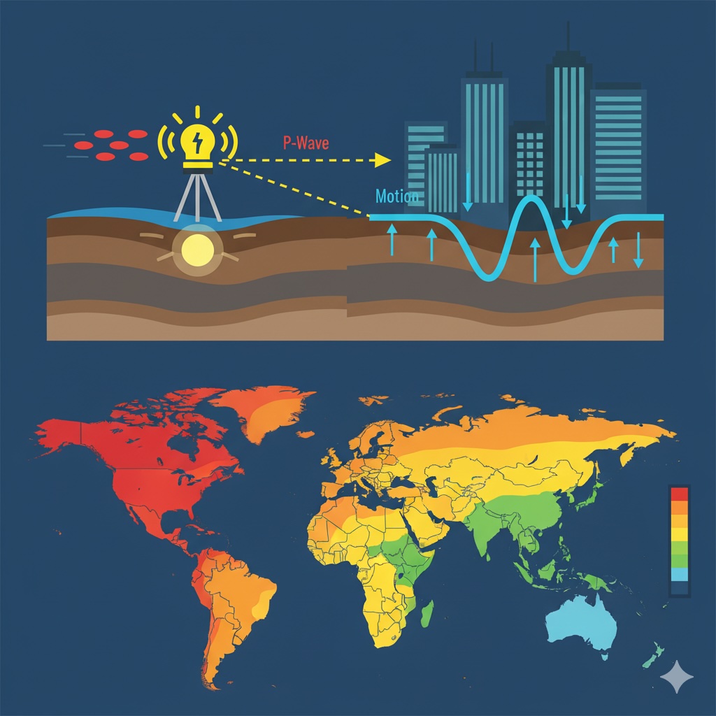 🔹 地震防災技術への応用 P波がS波より速いという性質は、緊急地震速報の根拠となっています。また、地震波の伝わり方や地盤ごとの増幅特性を解析することで、将来の揺れを予測した地震ハザードマップや、建物の耐震設計に活用されています。