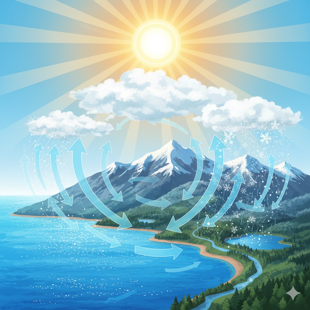 この「減らない水の謎」の裏には、地球全体で繰り広げられる、壮大で完璧な「水の循環(ハイドロサイクル)」というトリックが隠されています。