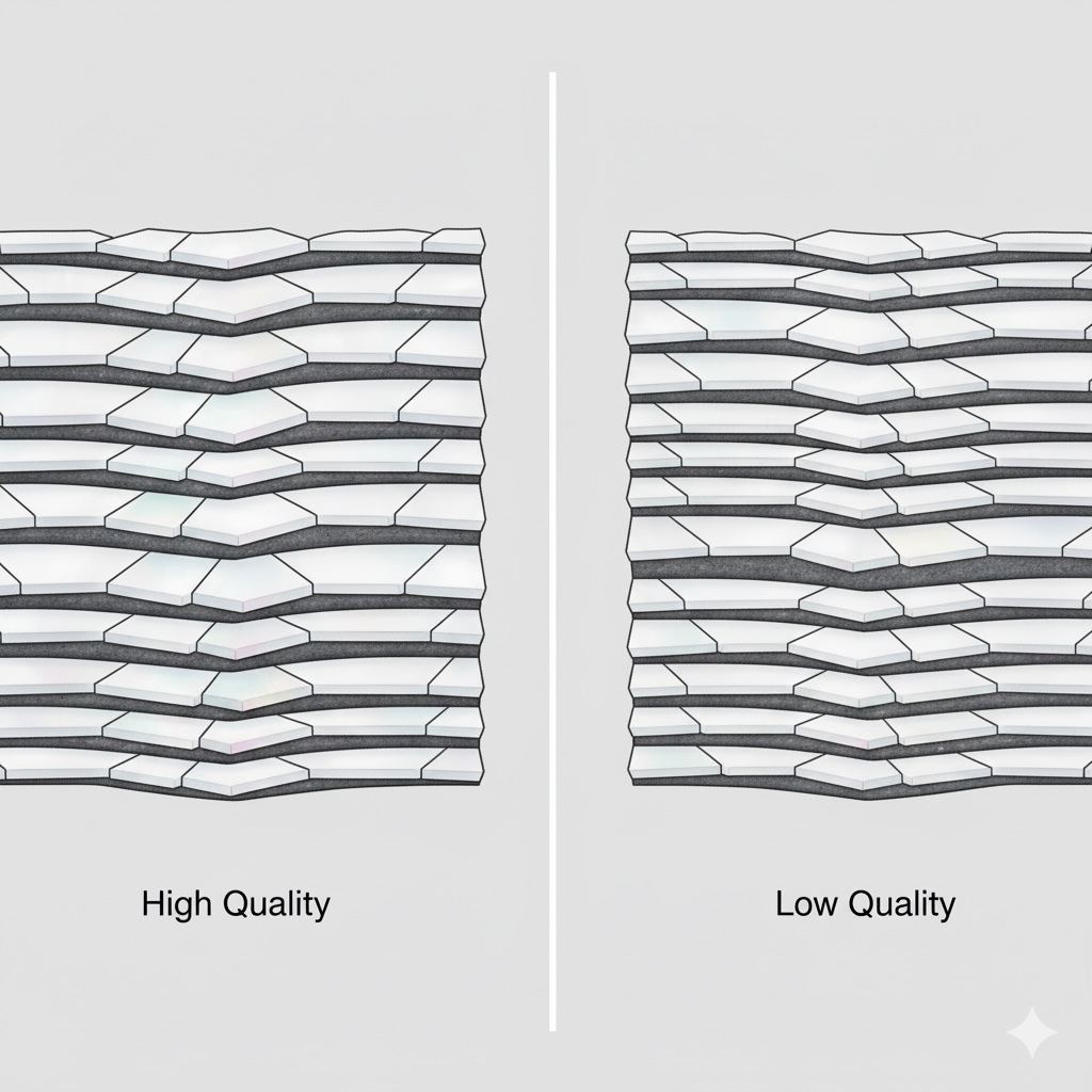 🔹 品質を決める要因:ナノレベルの均一性 真珠層の厚さが不均一だったり、結晶の間に不純物が挟まったりしていると、光の干渉が乱れてしまい、テリは弱くなります。
