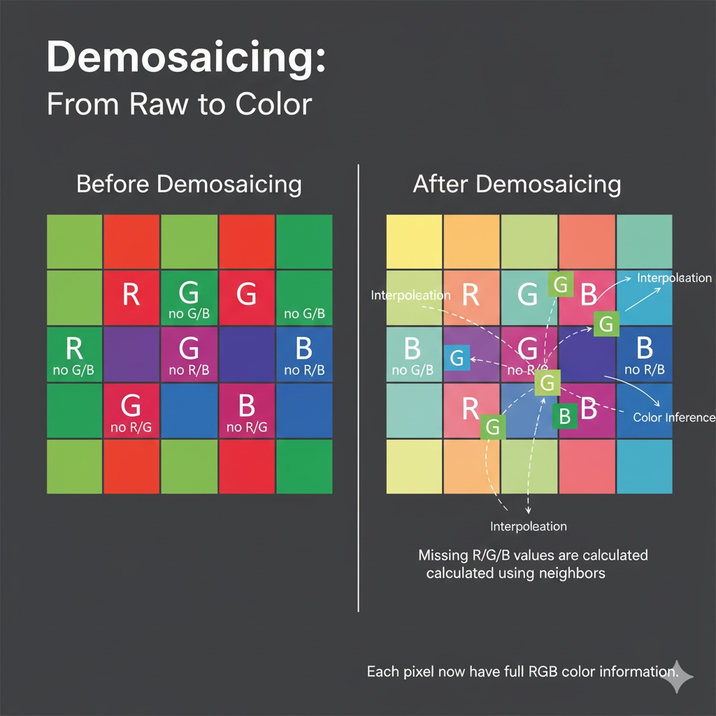 🔹 容疑者の計算:デモザイキング(Demosaicing)
