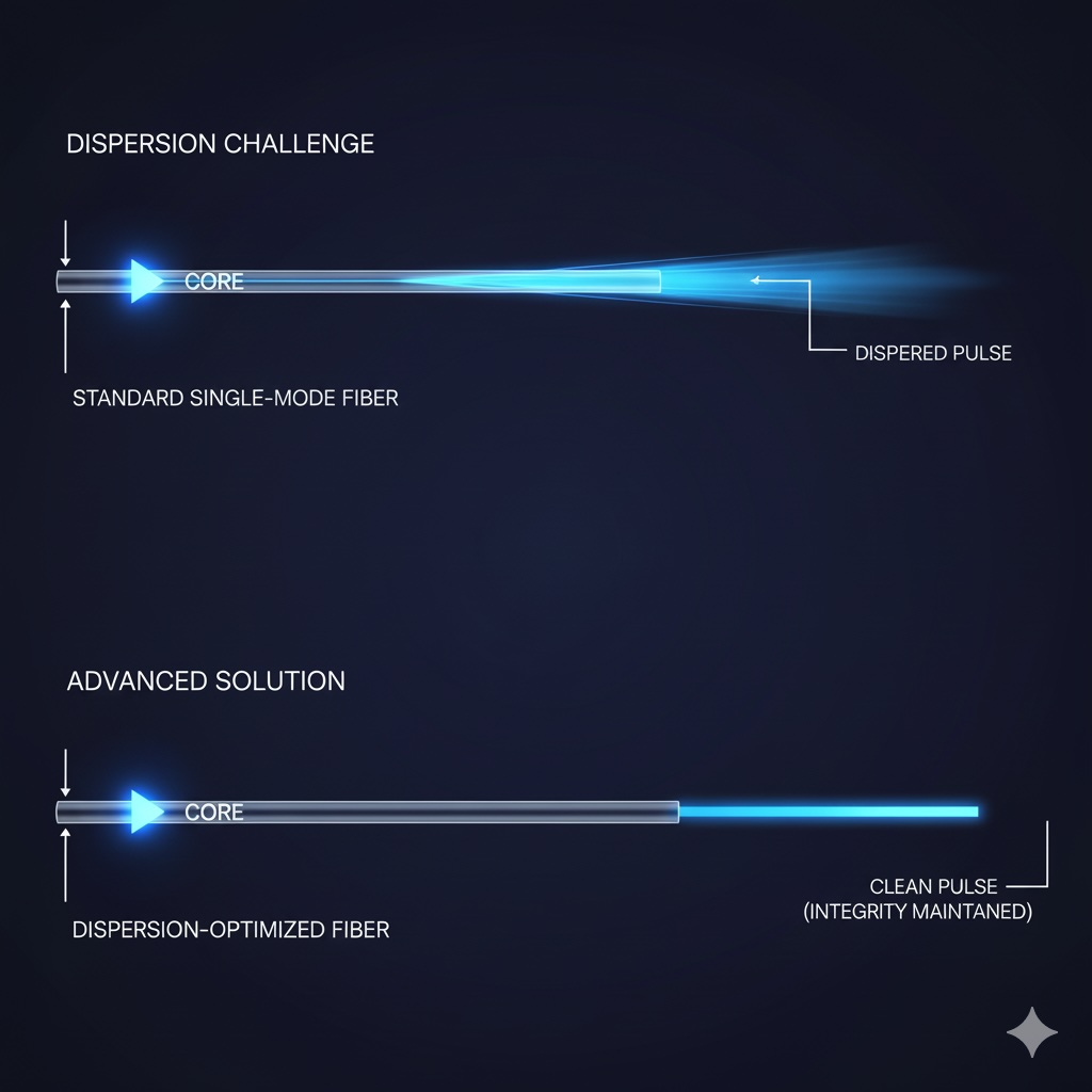 高速・長距離通信では、この分散を防ぐために、分散シフト光ファイバーなど、特定の波長帯域で光パルスの広がりを最小限に抑える技術が非常に重要になります。