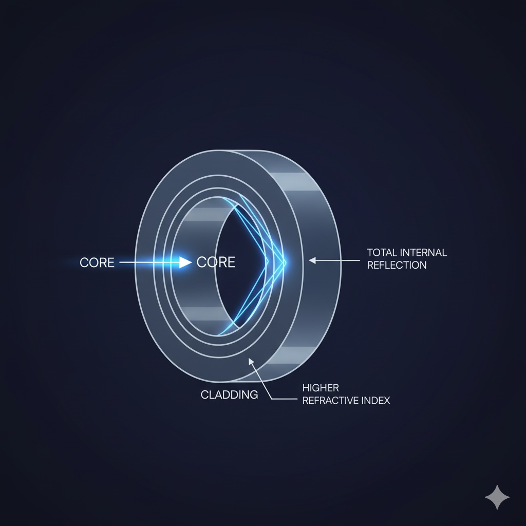2. 犯行の瞬間:コアとクラッドの「屈折率トリック」